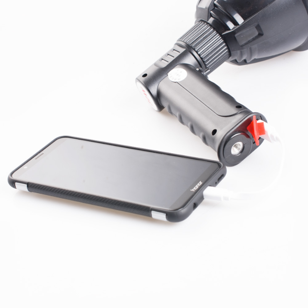 Mobile Phone Charging with micro USB port, you can connect your mobile phone with the spotlight and charge it.