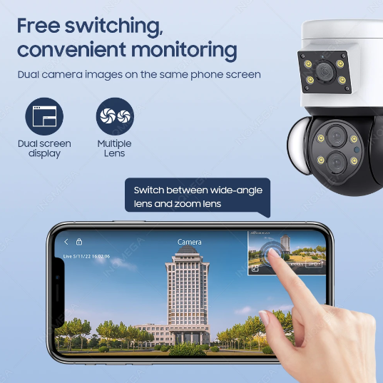 - Free switching, convenient monitoring, dual camera lens on the same screen